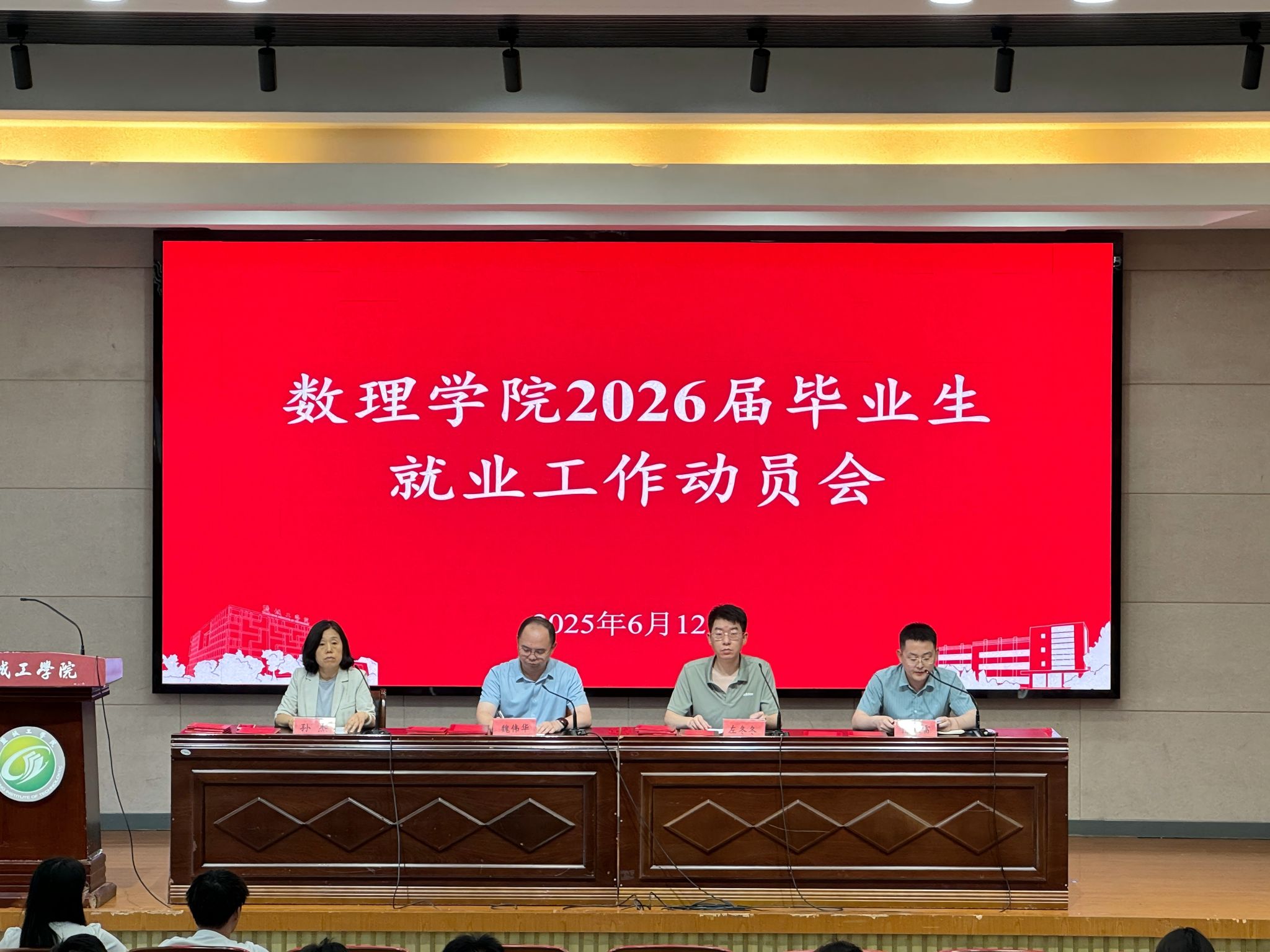 为进一步做好学生就业指导与服务工作,引导2026届毕业生明确职业方向、提升就业能力,6月12日下午,数理学院在机械馆报告厅召开2026届毕业生就业工作动员会。学院党总支书记魏伟华、学术助理左冬冬、学工办主任孙杰出席会议,2025届毕业生代表和2022级全体学生参会,会议由学院团委副书记陈亚雷主持。