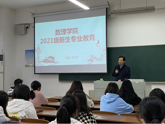 为使新生深入了解专业课程,尽快适应大学生活,明确未来发展方向,20211020日、27日下午,在博学楼D509教室,数理学院为首届本科新生开展系列入学专业教育。理学院院长薛长峰、党总支书记魏伟华、副院长徐宁、专业负责人、新生班主任、辅导员及2021级全体新生参加。