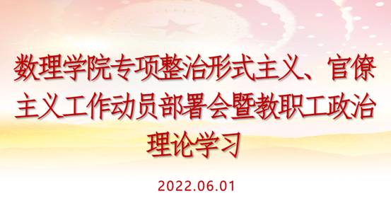 6月1日下午,数理学院线上举行专项整治形式主义、官僚主义工作动员部署会暨教职工政治理论学习会,党总支书记魏伟华主持,全体教职工参加。