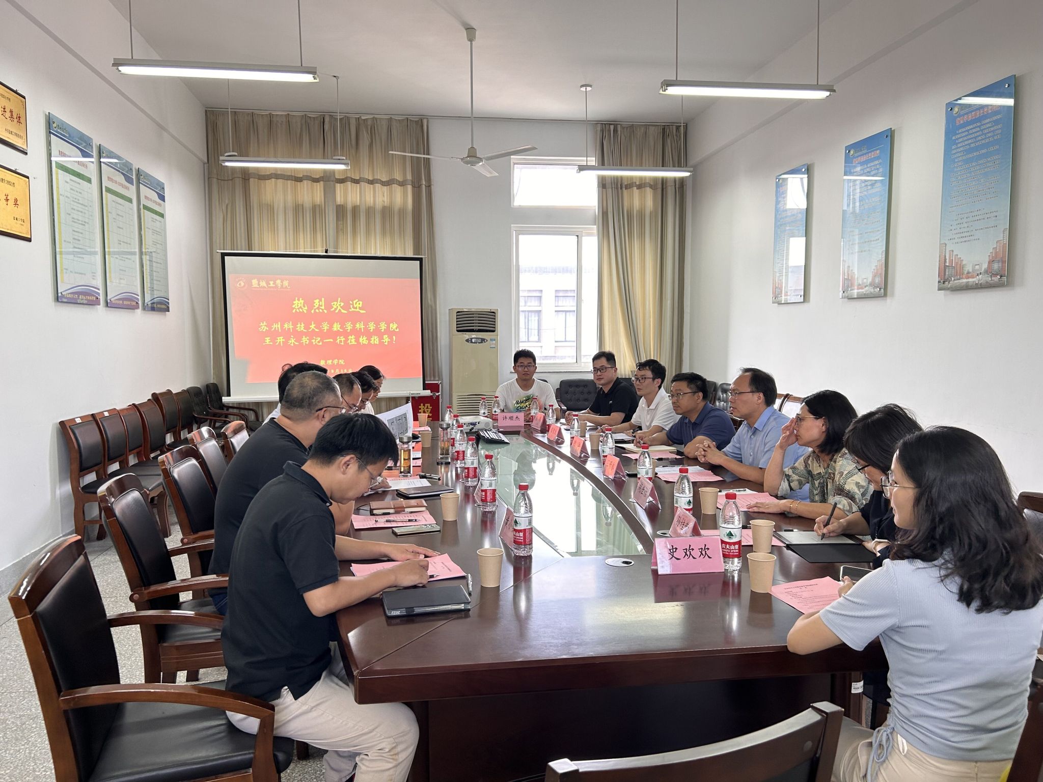 815日下午,苏州科技大学数学科学学院党委书记王开永一行8人来我院调研交流交流会博学B512召开,院长薛长峰党总支书记魏伟华副院长徐宁以及学院学生工作相关负责人参加交流会