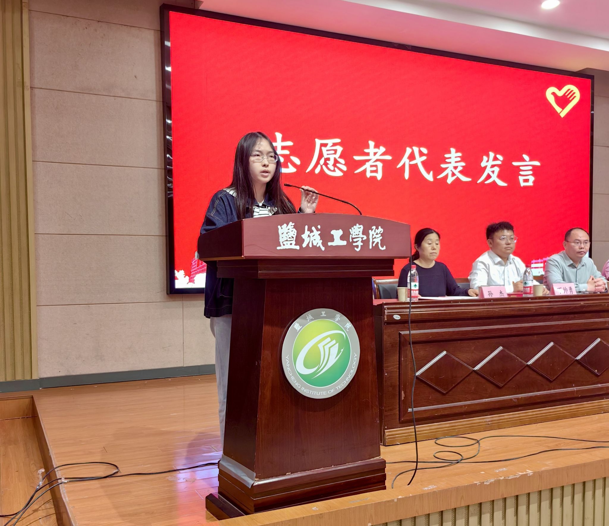 魏伟华向盐城市心途公益服务中心授牌,并为丁帅勇、戴维颁发“志愿服务校外辅导员”聘书。孙杰与丁帅勇共同签订志愿服务项目合作协议并联合发布10项青年志愿服务项目。数理学院B统计222陈丽雯作为大学生志愿者代表进行发言。