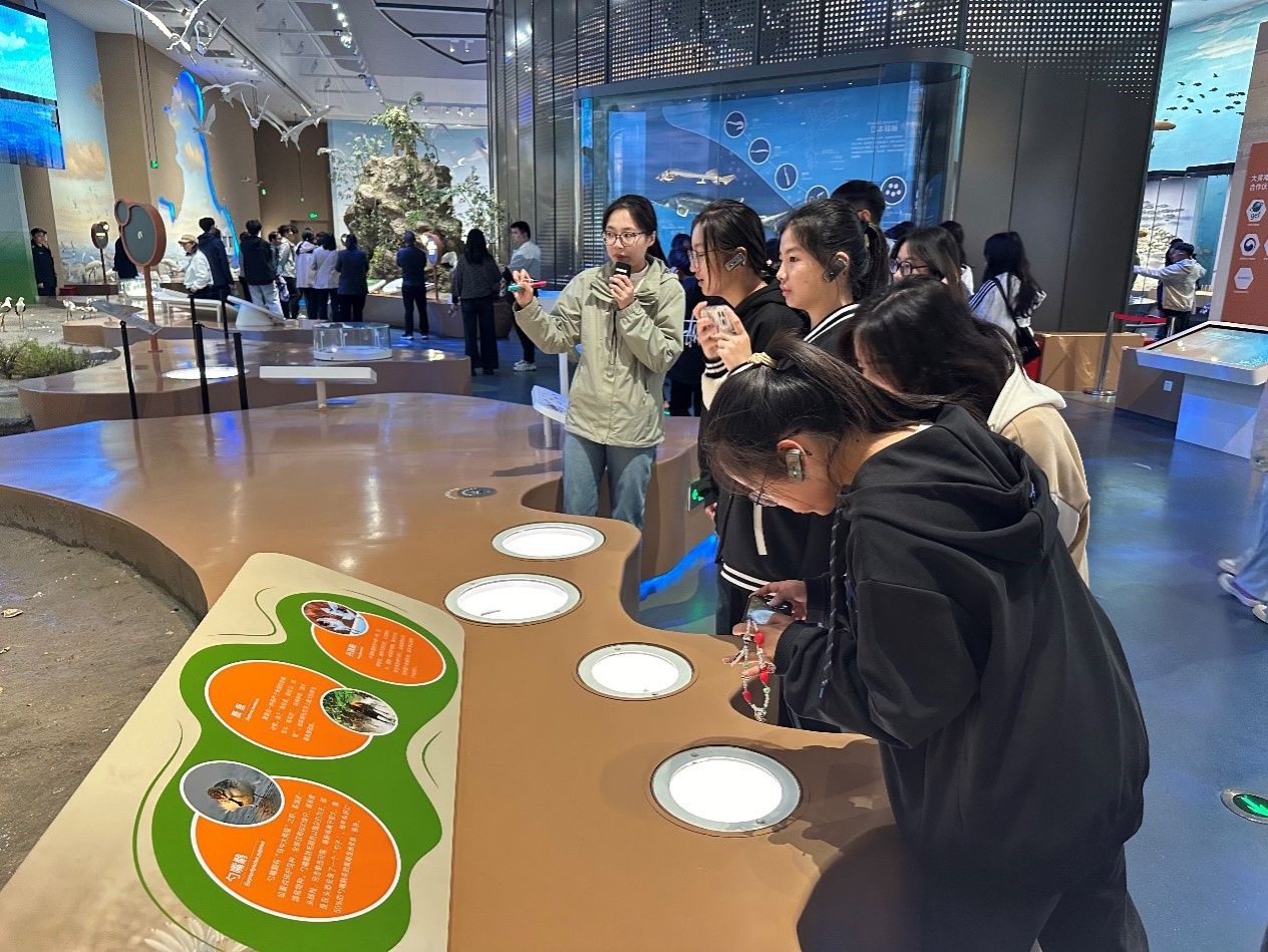 在黄海湿地博物馆,新生们通过观看短片回顾了盐城黄海湿地的申遗之路,依托博物馆场景模拟、沙盘模型、各类标本、多媒体互动等形式载体近距离感受盐城黄海湿地绝美的自然人文风光。广大新生们也在参观过程中进一步理解了保护湿地、保护自然的重要意义。
