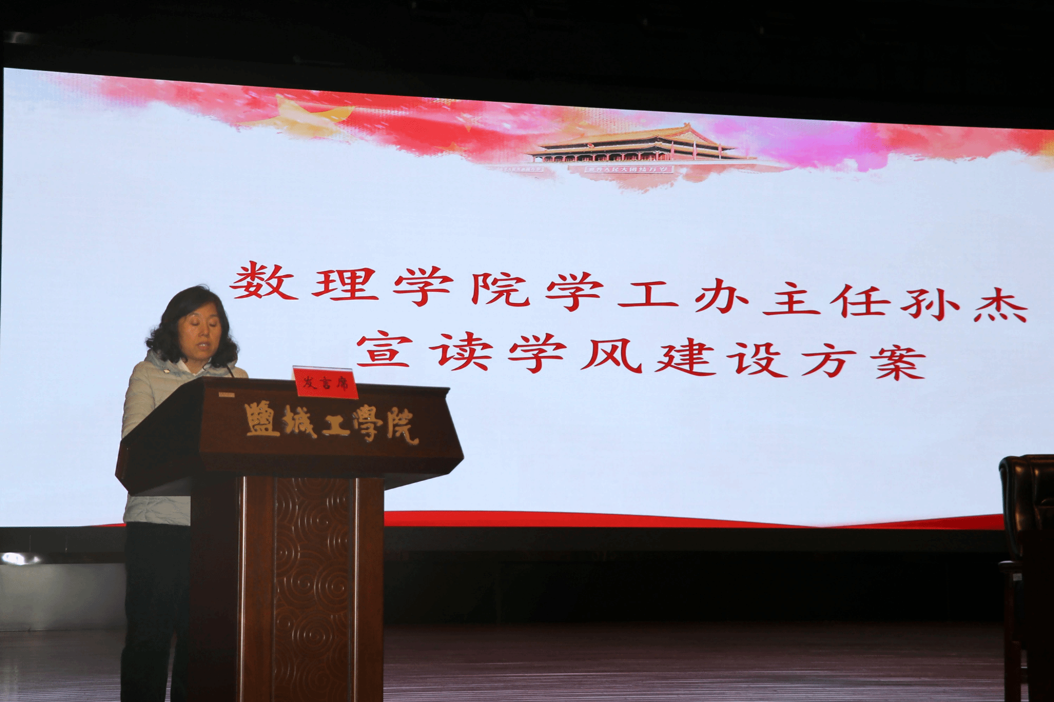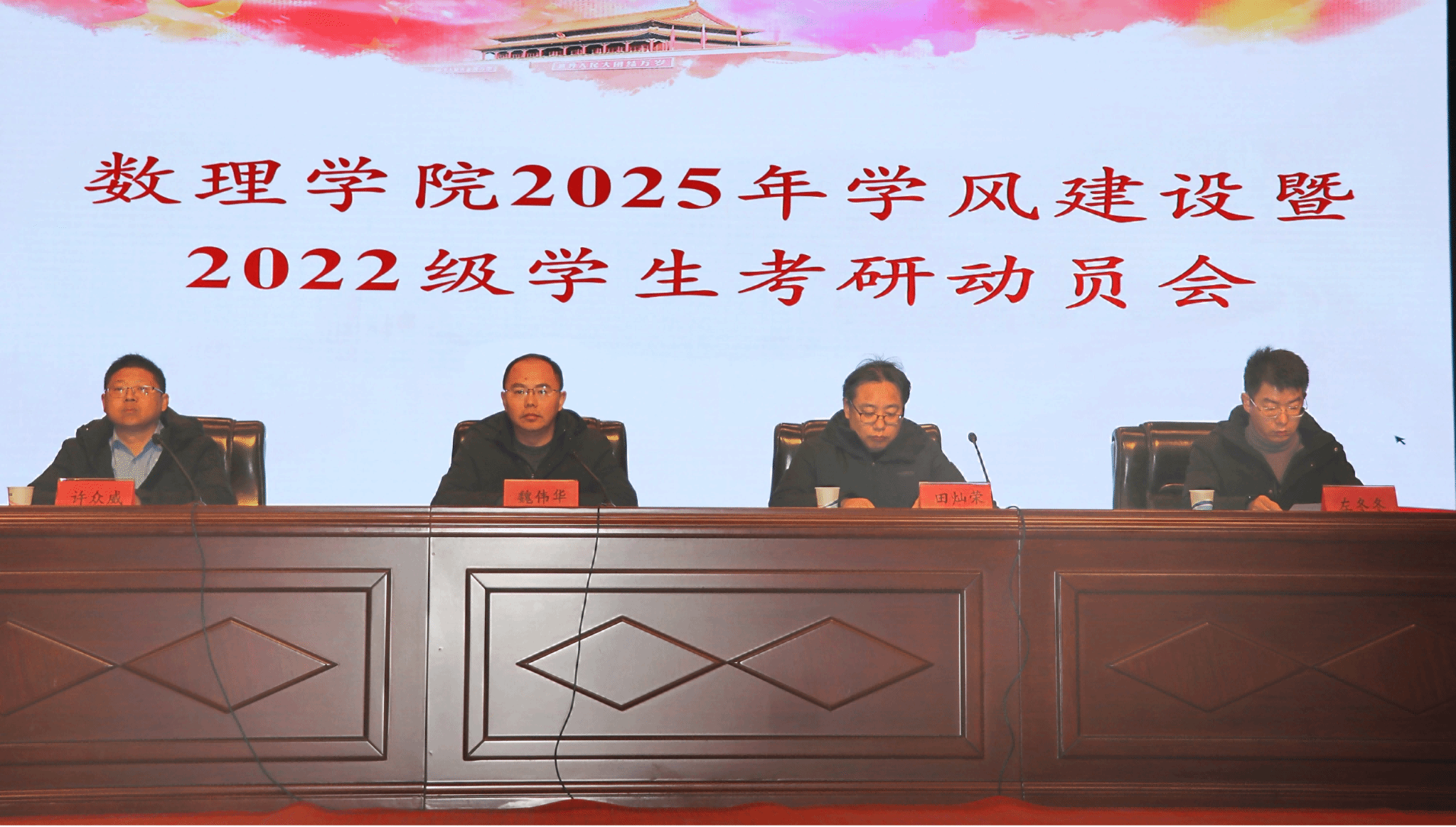 为营造积极向上的学习氛围,扎实推进学风建设,激发2022级学生考研热情,3月16日晚,数理学院在行政楼报告厅召开2025年学风建设暨2022级学生考研动员会。学院党总支书记魏伟华副院长田灿荣学术助理左冬冬全体辅导员及大一、大二、大三学生共500余人参会,会议由总支副书记许众威主持。