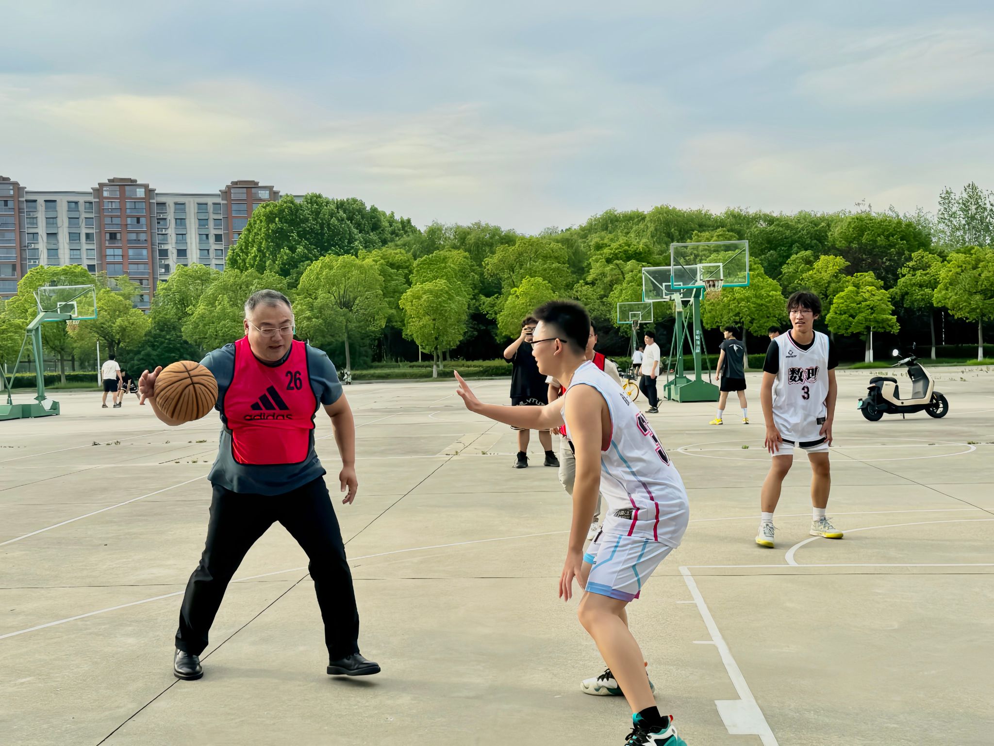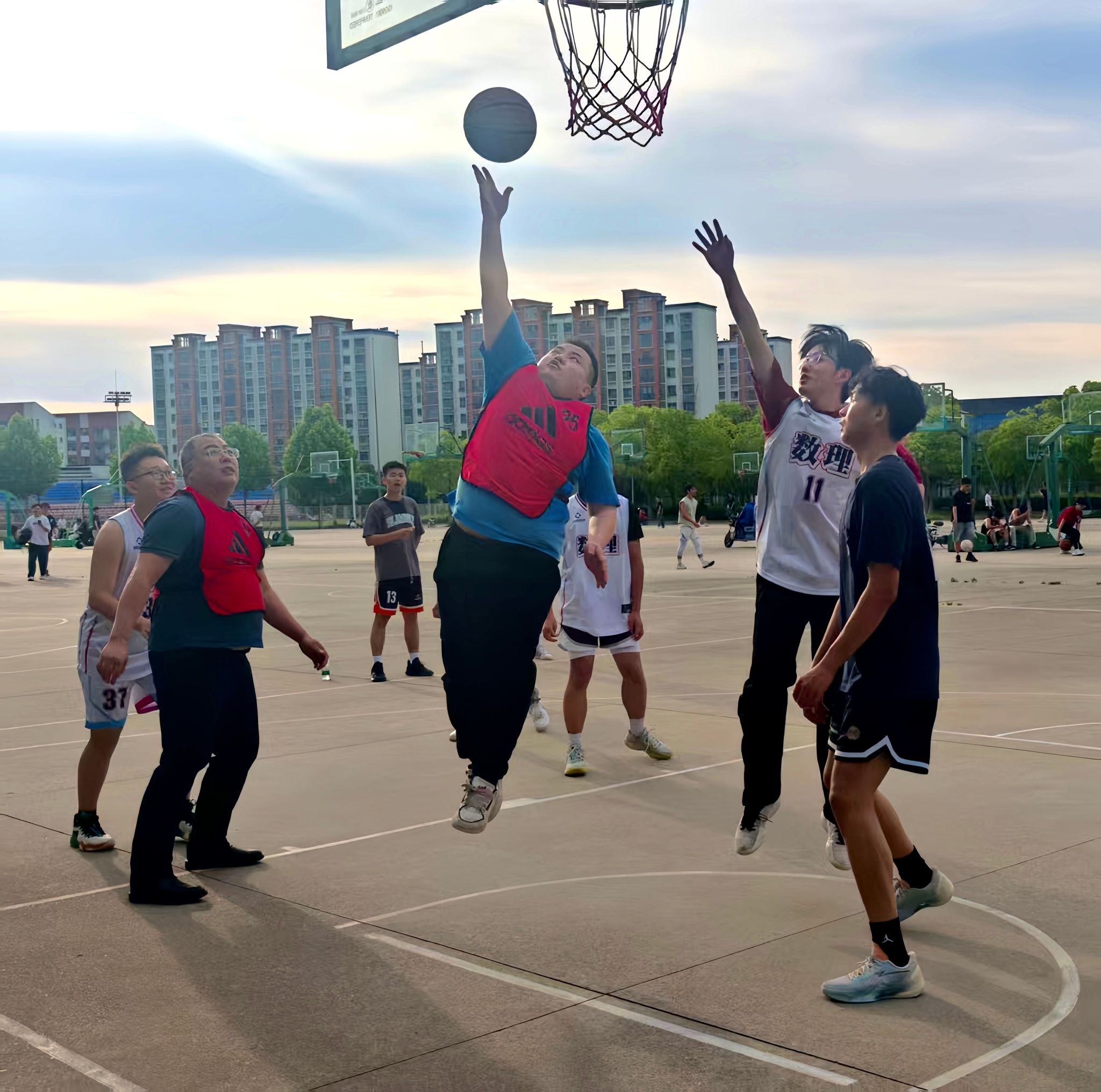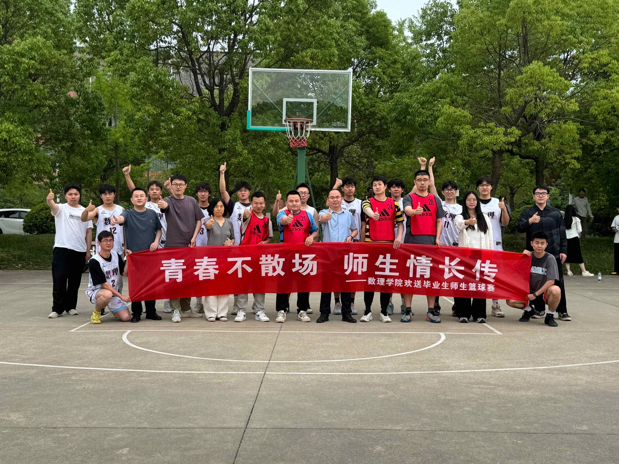 为欢送即将踏上人生新征程的2025届毕业生,营造温馨、热烈的毕业季氛围,611下午,数理学院在希望大道校区篮球场特举办青春不散场 师生情长传欢送毕业生师生篮球赛学院党总支书记魏伟华、院长徐宁、学工办主任孙杰、团委副书记陈亚雷、专业教师代表及毕业班学生参加。